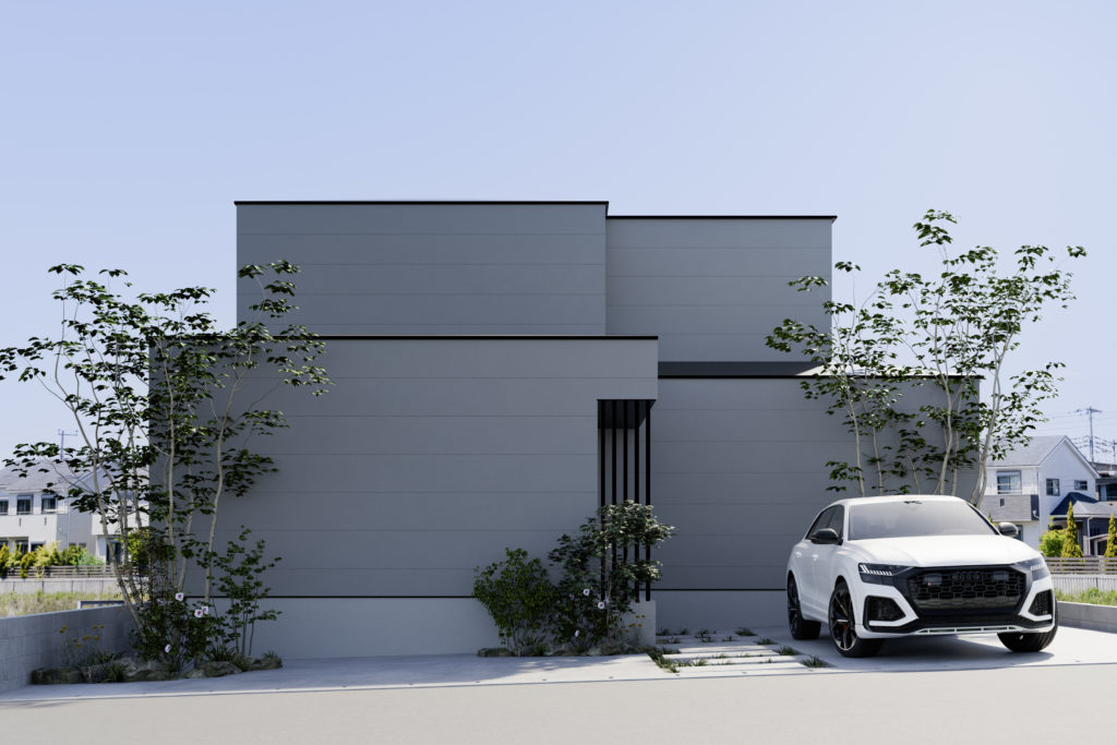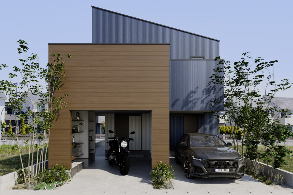 黒ガルバ×木 3つの箱が織りなす個性派二世帯住宅