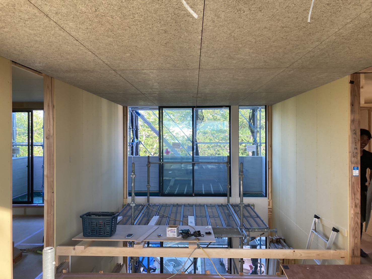 石膏ボードがほとんど貼られ、天井には木毛セメント板が貼られました。