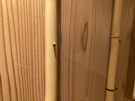 縦格子の竹の装飾と網代天井の装飾が特徴的でした。