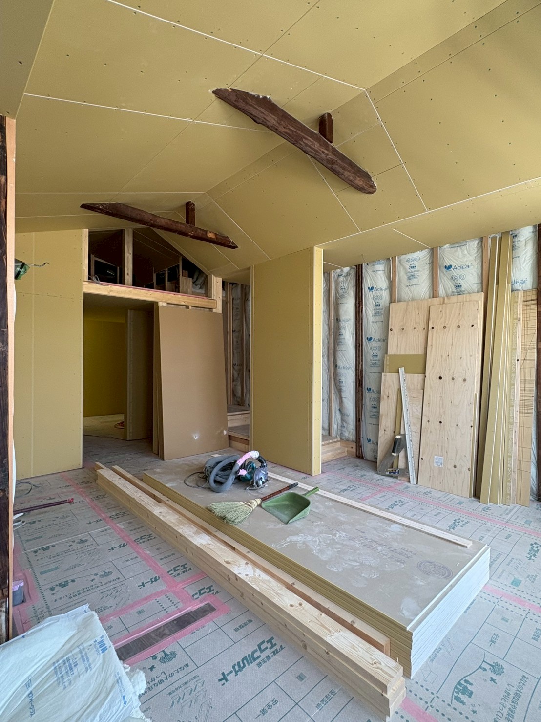 解体時に出てきた梁を見せ梁にしたいと要望を頂き、大工さんと相談をしながら進めました。