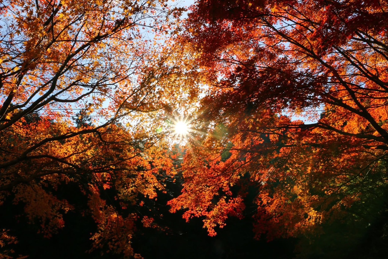 冬の枝垂れ桜、夏の森、秋のもみじです。