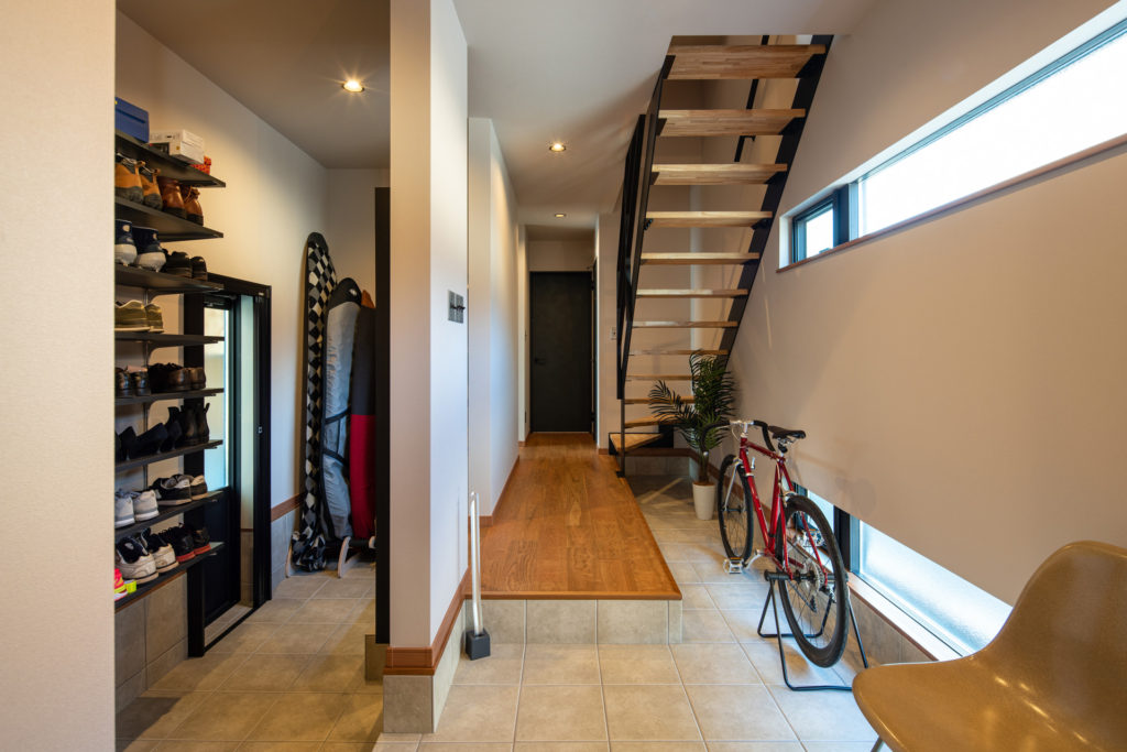 土間収納を活かした、片づけやすく居心地のよい住まいをご提案。