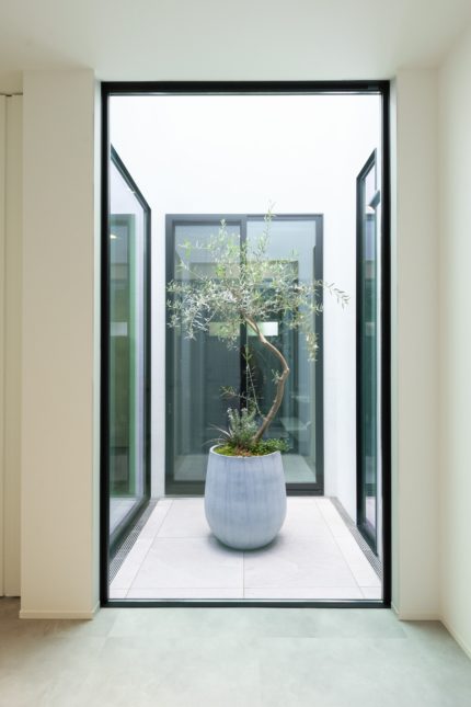 坪庭を囲む4面に窓をつくり、家中に光を拡散させています。