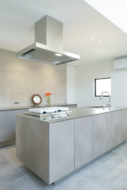 冷蔵庫やキッチン家電は隣のパントリー内にしまうことですっきりとした空間になりました。