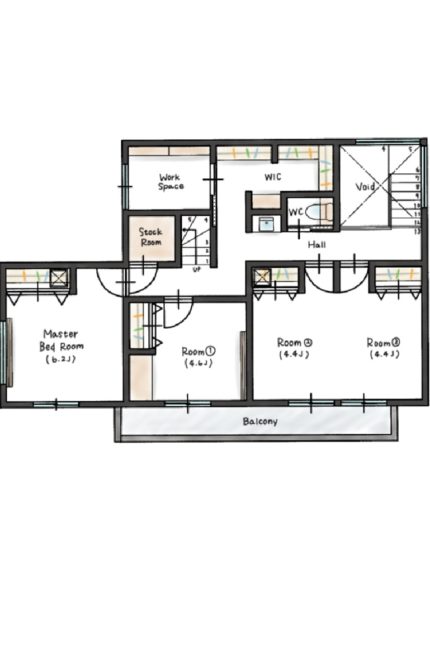 主寝室のほか子ども部屋、書斎、大容量のウォークインクローゼットと納戸を設置。1階のシューズインクローゼットやパントリー、ロフトに加え、希望した豊富な収納スペースを確保しました。