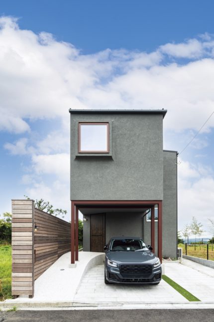 2階のキッチンの大きな窓が印象的な、シンプルながらも洗練された外観が特徴。