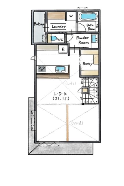 広々としたロフトでは、プロジェクターを設置して映画やライブ映像を楽しむことができます。将来はお子さんの遊び場としても重宝するスペースに。重い荷物の持ち運びにも便利な固定階段で上り下りできるので、収納としても活用できます。