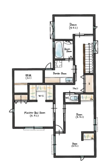 大容量のウォークインクローゼットのある主寝室のほかに、将来2部屋に分割できるように設計された子ども部屋、夫人のサロン、洗濯物干しもできる洗面脱衣室などを設置したプライベート空間に。