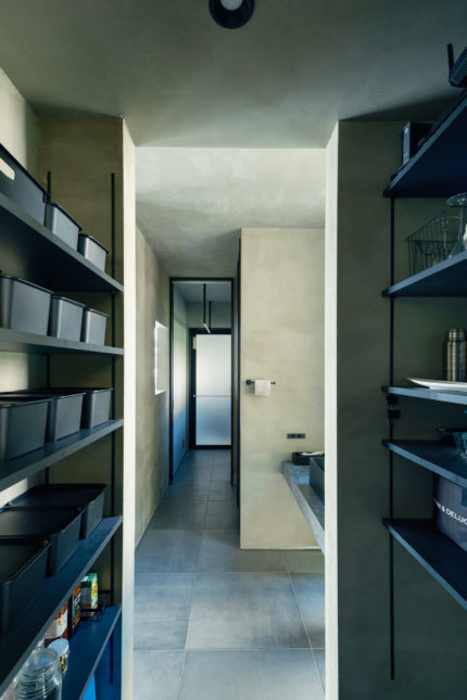 食器や小物などはキッチン横のパントリーに収納することで、キッチン空間をすっきりとさせています。