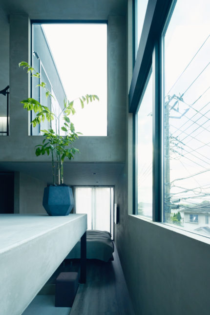 高台に建つことからこの場所の窓にはカーテンやブラインドを付けずに、窓外の景色を楽しめるようにしています。