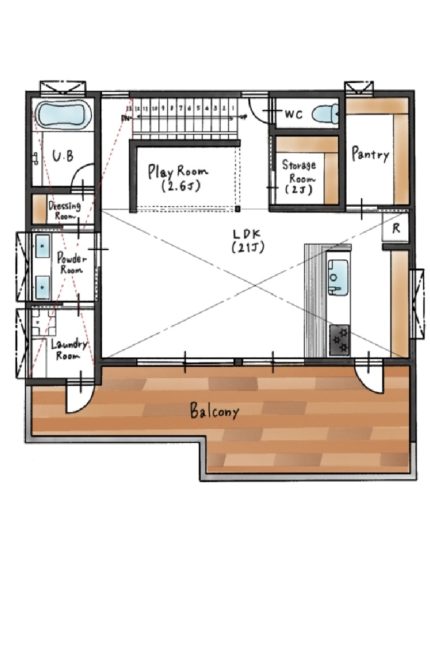 キッチンの前に、お子様の勉強スペースとなるカウンターを設置。家事をしながらでも目が届くので、分からない箇所もすぐに教えることができます。